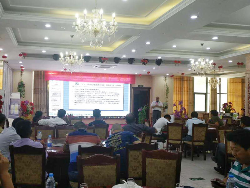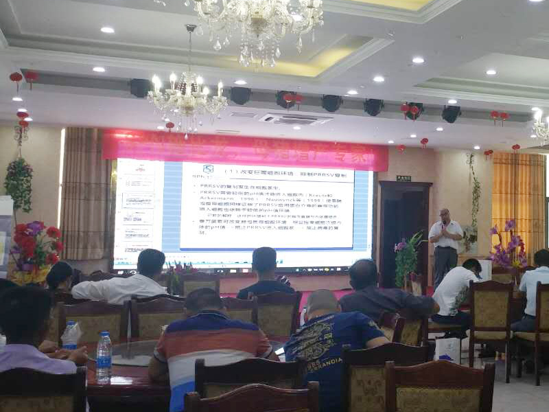 隨后由長沙施比龍母豬增產(chǎn)資深專家羅永松主講了如何提高母豬增產(chǎn)及夏季豬病的防控,著重講述了怎樣提高母豬繁殖能力,增加豬場收益,降低養(yǎng)豬成本。最后羅永松老師特別強調(diào)夏季母豬疾病的防控要點,并為在場的養(yǎng)殖戶提供了夏季母豬的應(yīng)激、藍耳病、霉菌毒素三大疾病的防控方案。