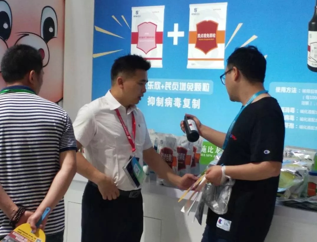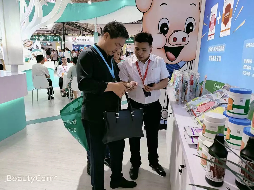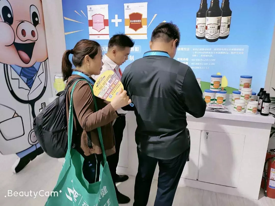 5月的武漢就像一幅濃墨重彩的油畫,各種花開絢爛。第十七屆中國畜牧業(yè)博覽會于2019年5月18日在武漢國際博覽中心正式拉開序幕,長沙施比龍在總經(jīng)理孫國勝的帶領下一行六人到會參加。施比龍參展的“好孕萊”“優(yōu)樂欣”“芪貞增免顆?!薄皹废病薄氨三埜鼻濉钡戎鞔虍a(chǎn)品吸引了全國各地紛至沓來的參展嘉賓。