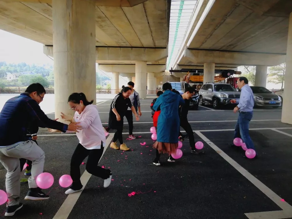 活動起始前,雙方隊伍為比賽精心準備,互相綁氣球,商量策略。比賽一開始,誰也不想讓自己的隊伍落后,參賽人員每人每只腳捆綁2個氣球,裁判的一聲令下,大家用腳去踩對方隊員氣球,同時保護己方隊員不被踩。最后“和平精英”隊以一球領先之式贏得了本局比賽。