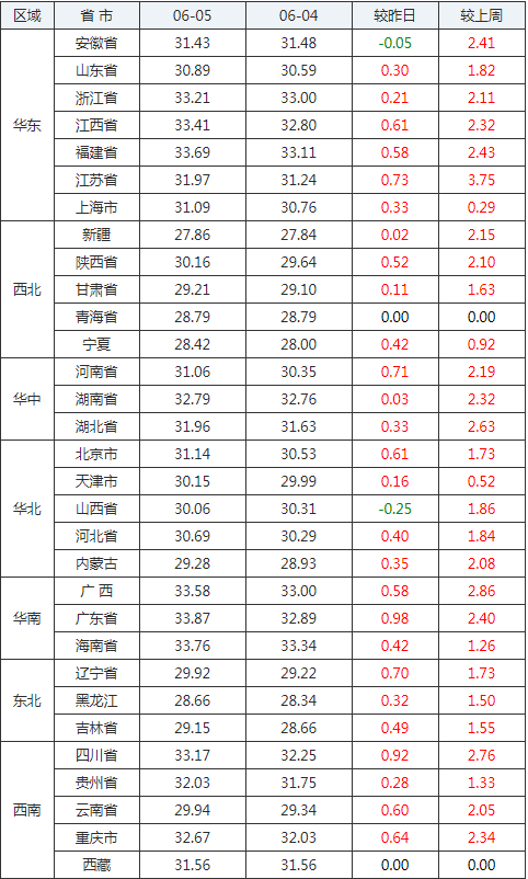 2020年06月05日全國(guó)外三元生豬價(jià)格行情漲跌表