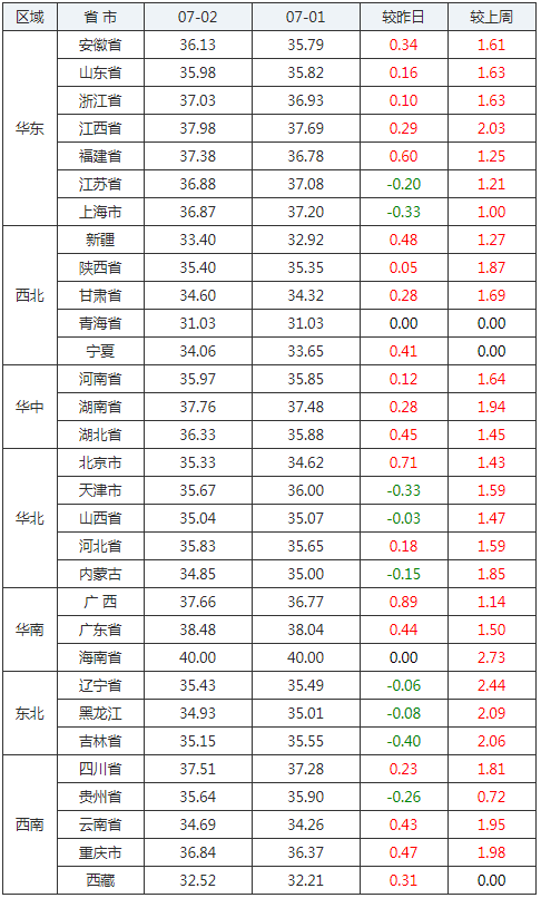 2020年07月02日全國(guó)外三元生豬價(jià)格行情漲跌表