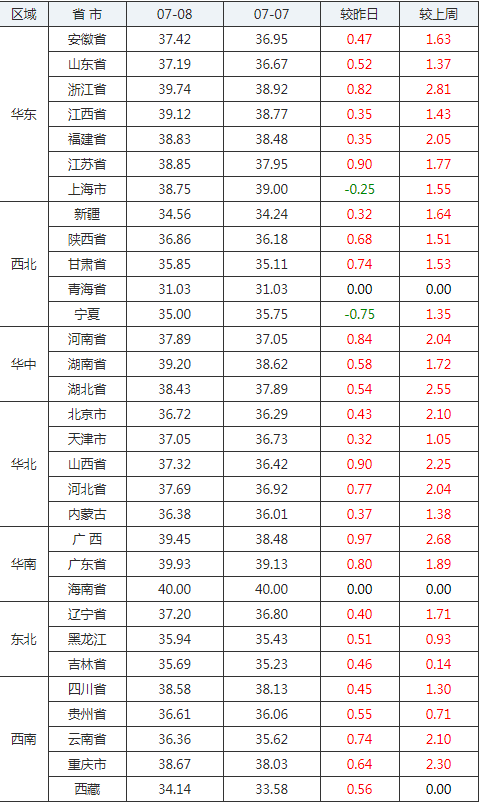 2020年07月08日全國(guó)外三元生豬價(jià)格行情漲跌表