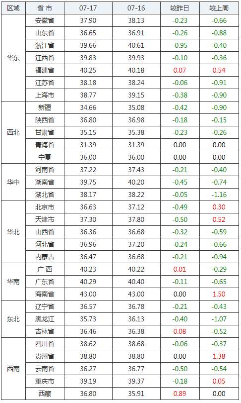 2020年07月17日全國(guó)外三元生豬價(jià)格行情漲跌表