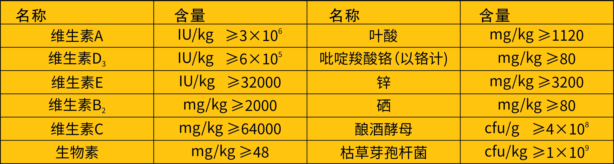 【產(chǎn)品分析成分保證值】(每kg產(chǎn)品中含)